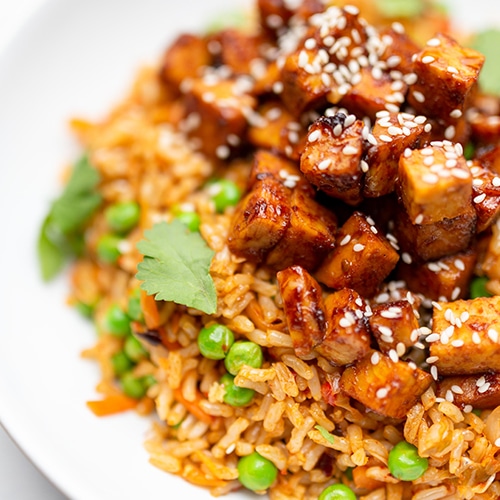 This Kimchi Fried Rice With Sticky Tempeh dish is made with Korean spices. It is packed with flavour and nutrition, what's not to love?