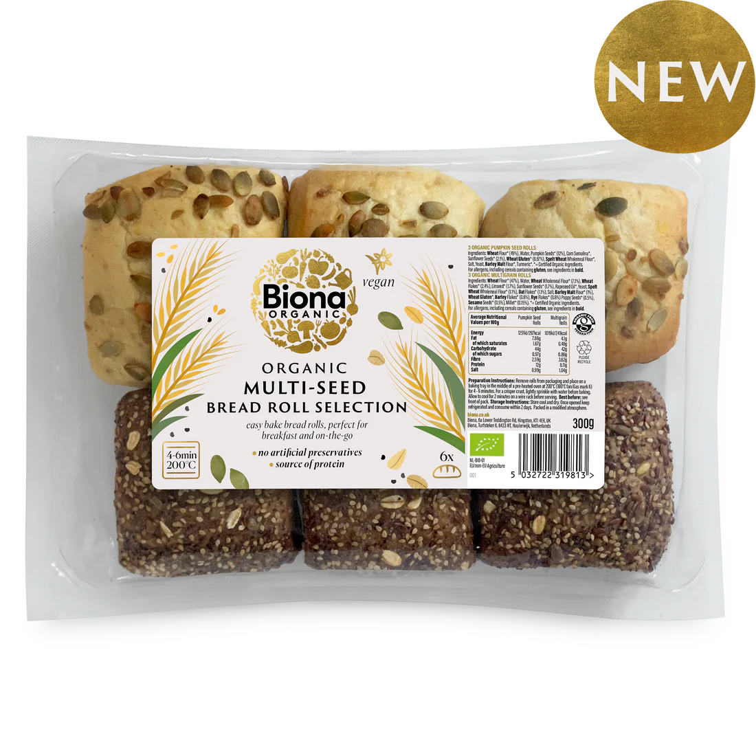 Biona’s Organic Multiseed Bread Roll Selection is a selection of freshly baked white and brown bread rolls, each crafted with a unique blend of nutty protein-rich seeds and grains.
