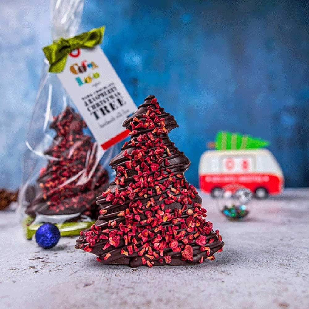 Cocoa Loco Organic Dark Chocolate & Raspberry Christmas Tree, lovingly produced in the Sussex countryside