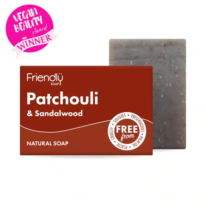 Elevate your natural skincare routine with the pure essence of Friendly Soaps Patchouli & Sandalwood Soap bar