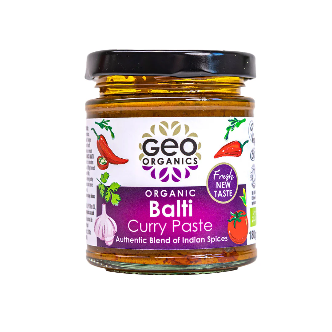 Geo Organics Balti Curry Paste is the perfect base for any delicious curry night in with friends.