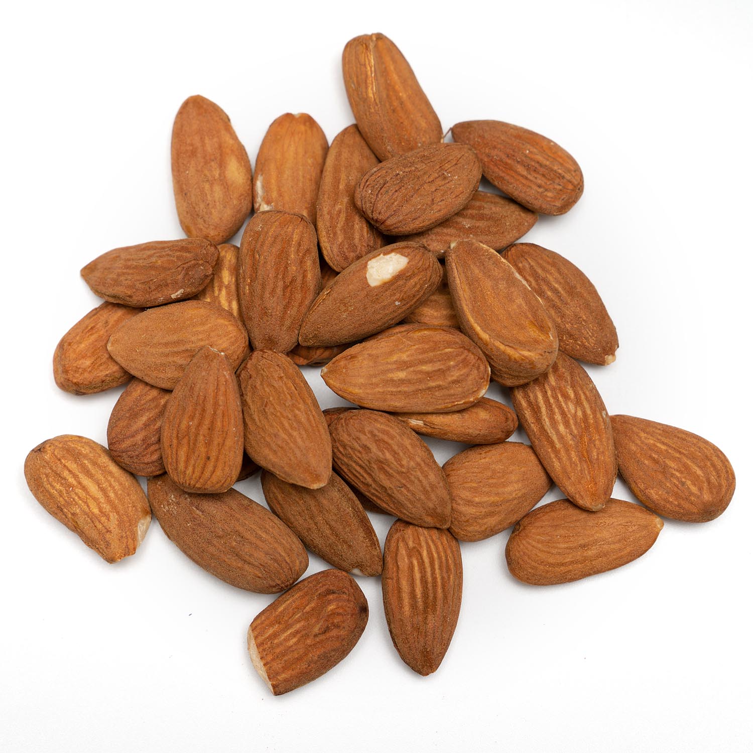Unblanched almonds have been shelled but undergo no other processing so still have the skin intact and are brown in colour.  Blanched almonds by comparison have been heat treated with water to remove the skin which reveals the white flesh of the seed.