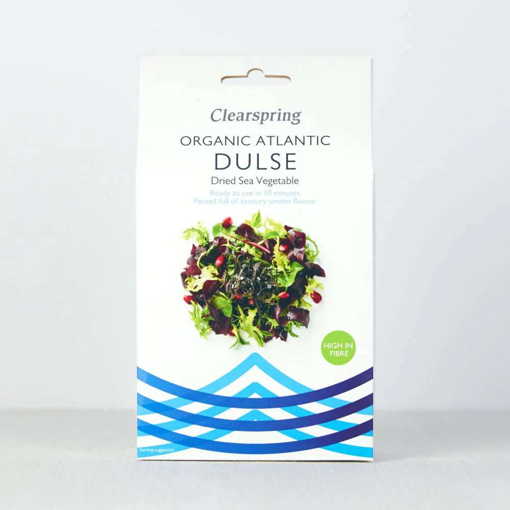 Dulse is the best known sea vegetable from the North Atlantic and its versatility and ease of use make it a popular choice for a wide variety of dishes. Purple-red in colour and slightly spicy in taste, Clearspring Dulse can simply be washed, soaked, cut and added to soups and salads, or dry roasted and crumbled as a garnish. For a rich tasting treat, try deep frying it straight from the pack.