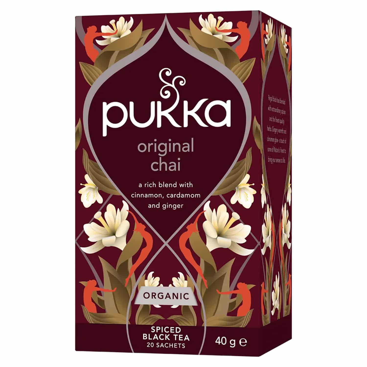 Pukka Chai is a traditional spiced tea. Close your eyes and step into India.