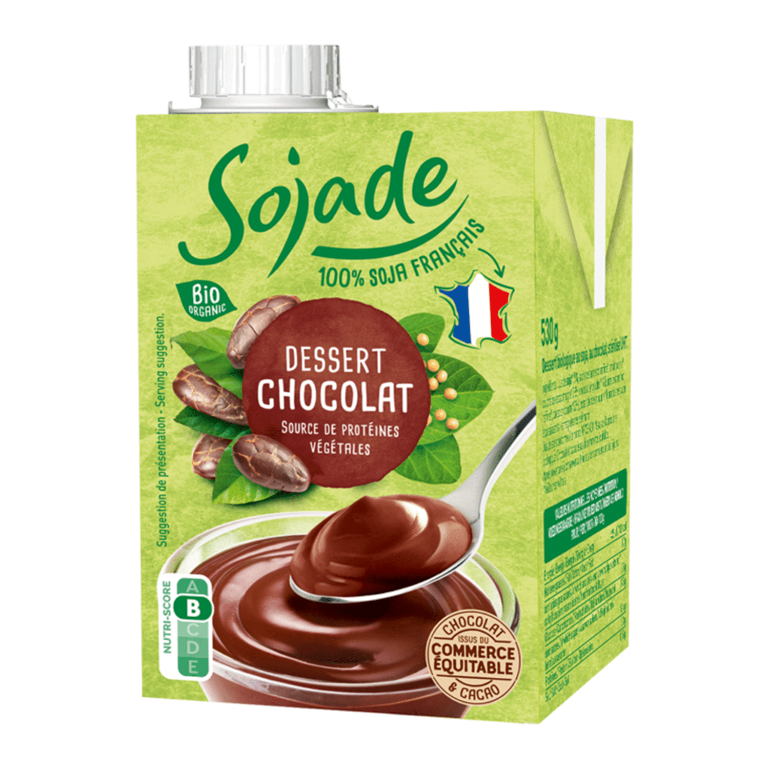 Sojade Organic Chocolate Soya Custard is a plant-based Chocolate Soya custard made with fairtrade cocoa and organic French soya