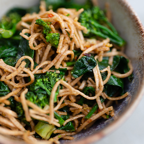 This tasty zingy noodle dish is made with garlic, broccoli and spinach. This recipe is a great way to get your daily dose of dark leafy greens. These yummy noodles use Biona Organic Coconut Aminos which is made from the sap of coconut and a touch of sea salt. Coconut Aminos are the perfect alternative to soya sauce. Naturally gluten and soy free, this versatile sauce has a sweet and salty flavour that is perfect for using in marinades and to season savoury dishes.If you like spice then add some chilli to this recipe for the ultimate kick.